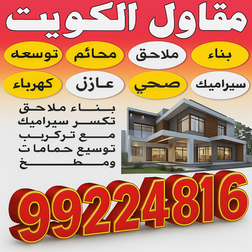 نقوم ببناء العمائر والفلل والهناجر والملاحق والاستراحات تشطيب تسليم مفتاح عظم مع المواد عظم وكافة الخدمات للمقاولات في الكويت مقاول ملاحق مقاول عظم الكويت أفضل مقاول بناء فلل عظم في الكويت مقاول تشطيب مقاول بناء عام فلل عمائر مساجد مستودعات تنفيذ مشاريع انشاء ملاحق علويه وارضيه بدرومات خزانات